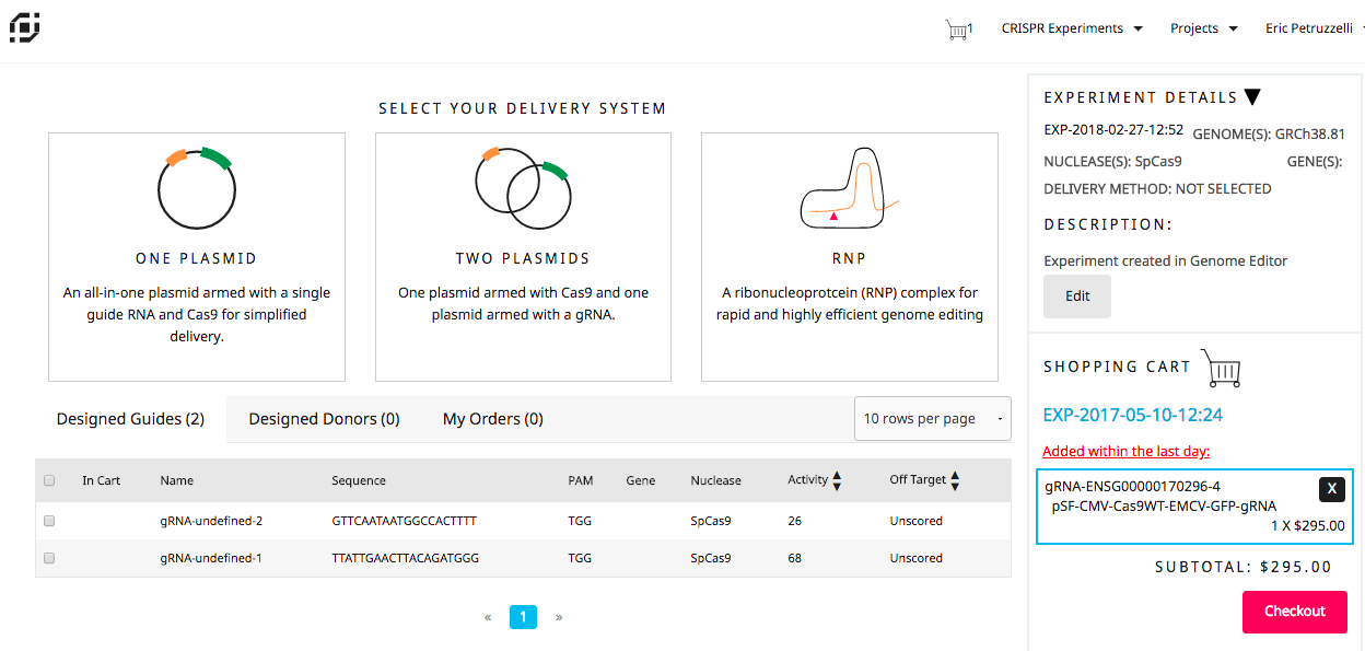 Custom e-Commerce solution to accommodate dynamic nature of biology. All CRISPR molecular sequence products had to be uniquely pre-processed prior to ordering to being synthesized into vendor reagents.